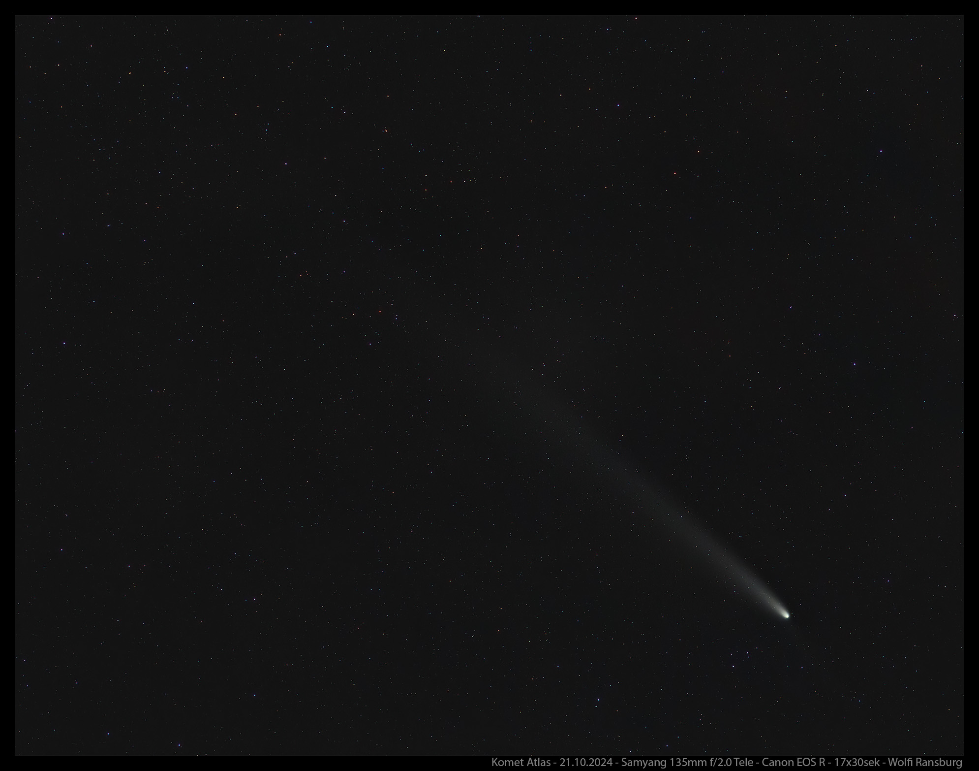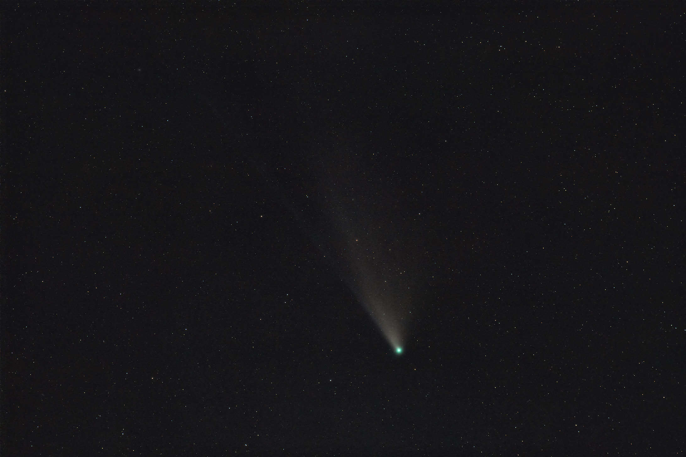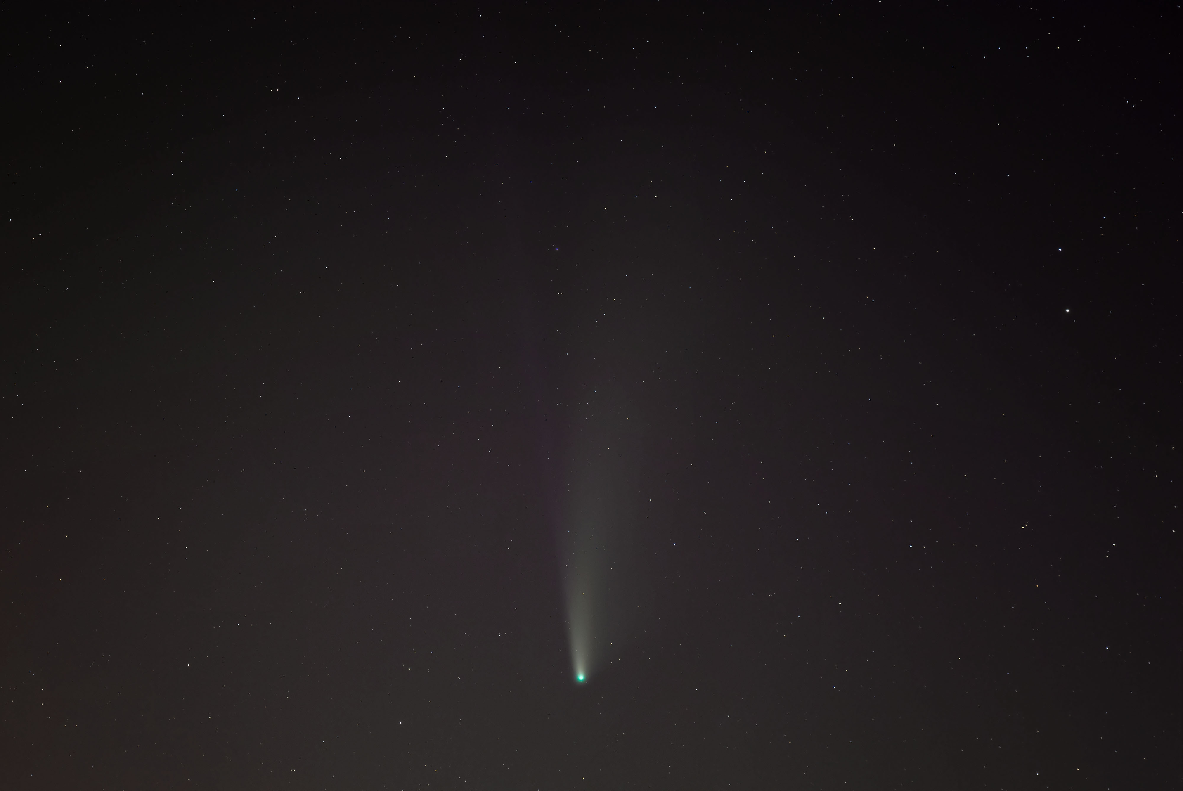 Der Abschied von einem herrlichen Himmelsobjekt, zum Aufnahmezeitpunkt war der Komet kein Objekt für das bloße Auge mehr doch im Fernglas war er gut sichtbar. Um den Kometen formatfüllend abzulichten, hat es schon eine längere Brennweite und eine größere Optik gebraucht. Wieder ist die Aufnahme von der Terasse unserer Wohnung in Kirchberg / Tirol aus entstanden.