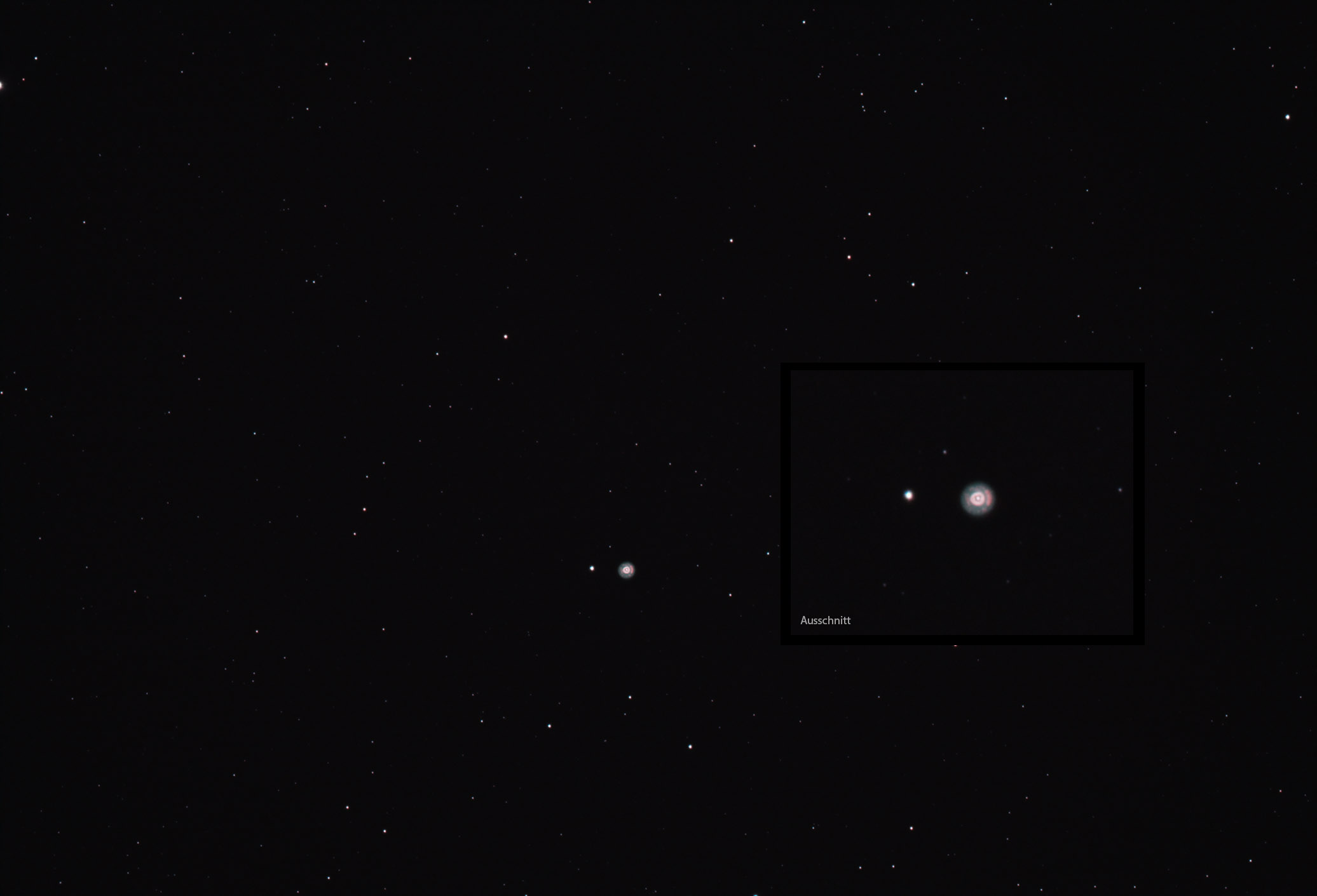 Wirklich kein Aufwand – ohne Flat, mit kamerainternem Dark – Belichtungszeit 5x 1 Minute – ohne Nachführkontrolle. … Und das ist rausgekommen.