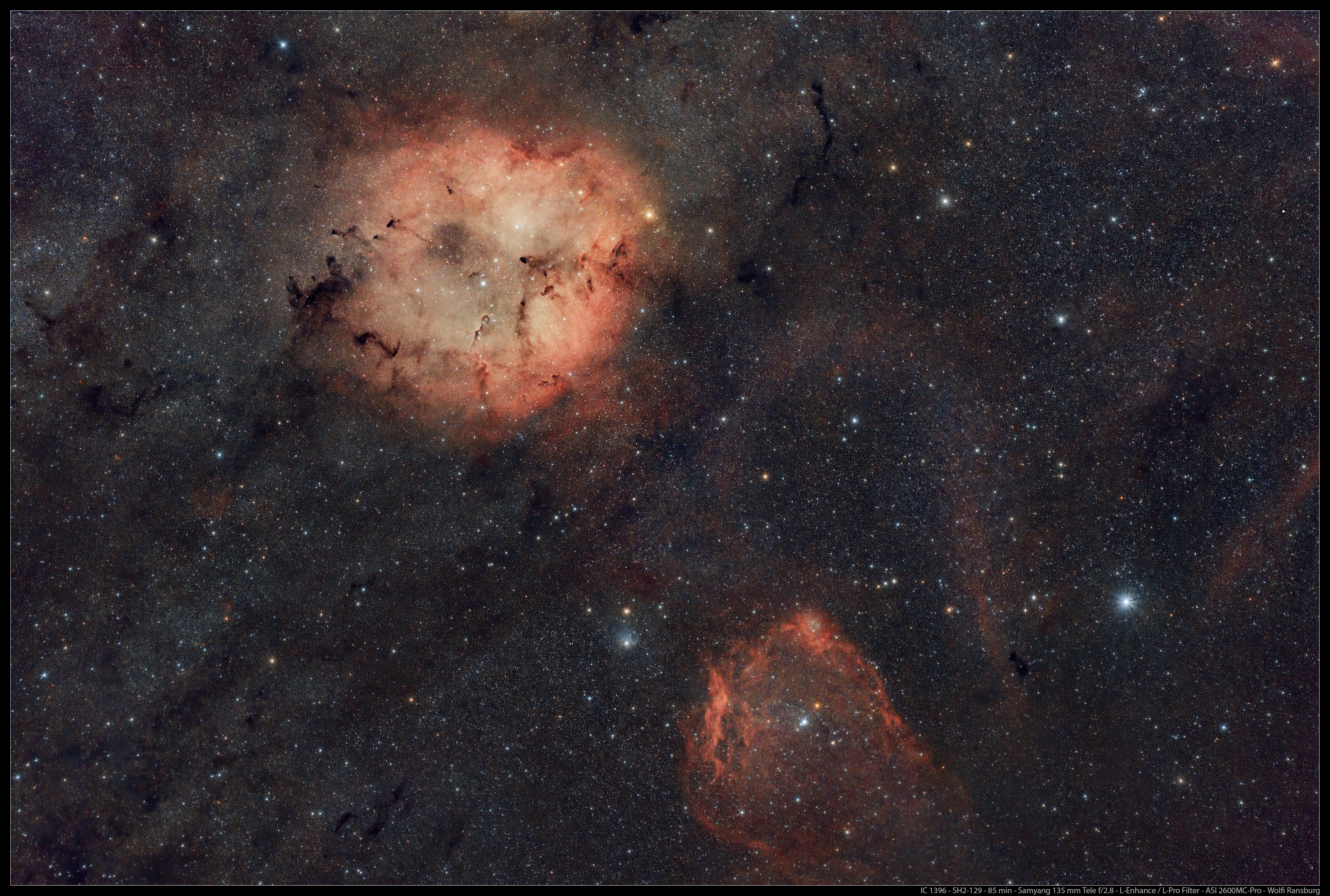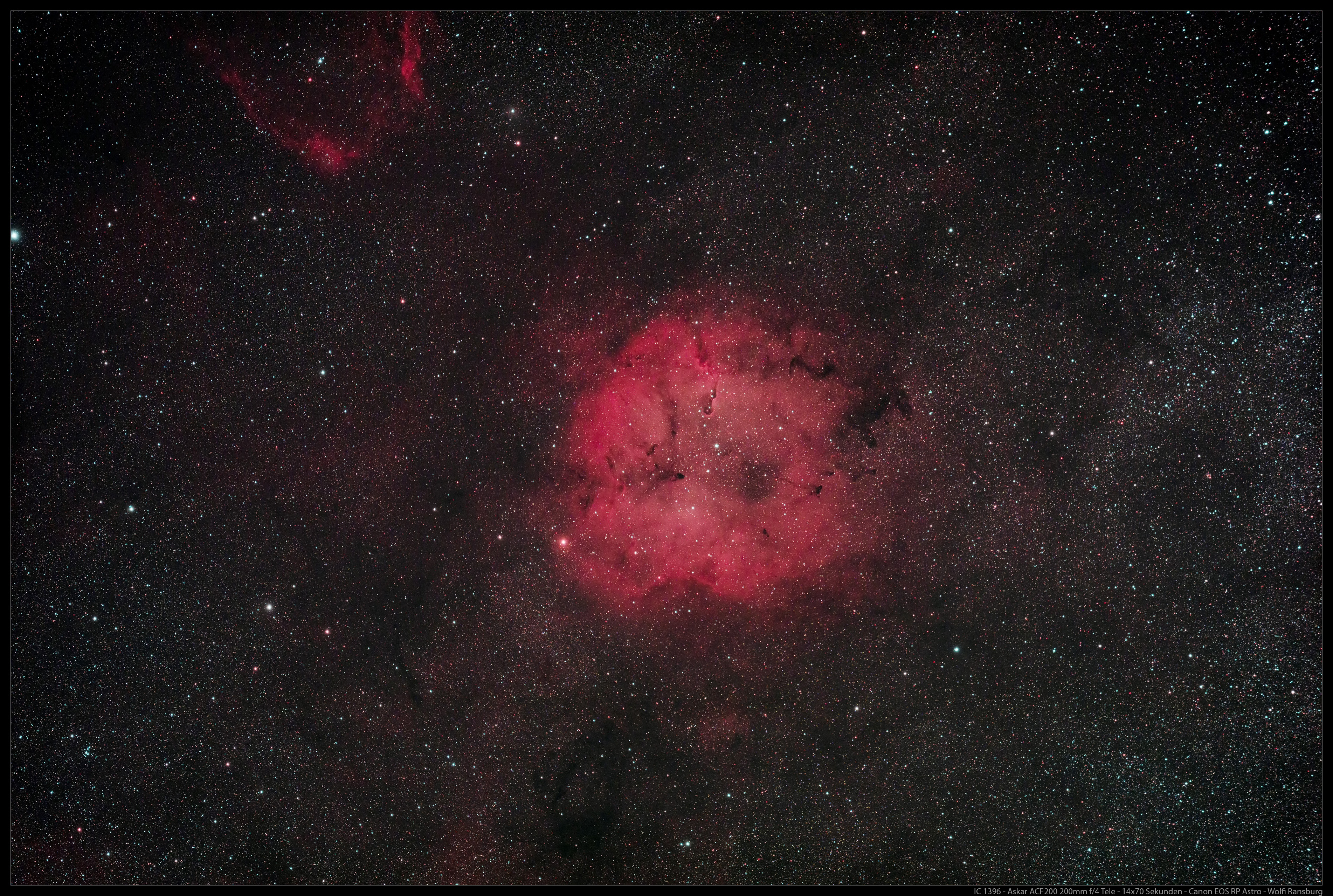 IC 1396 ist ein ausgedehnter und lichtschwacher Nebel im Sternbild Kepheus. Der Elephantenrüsselnebel ist eine markante Struktur im Nebel.