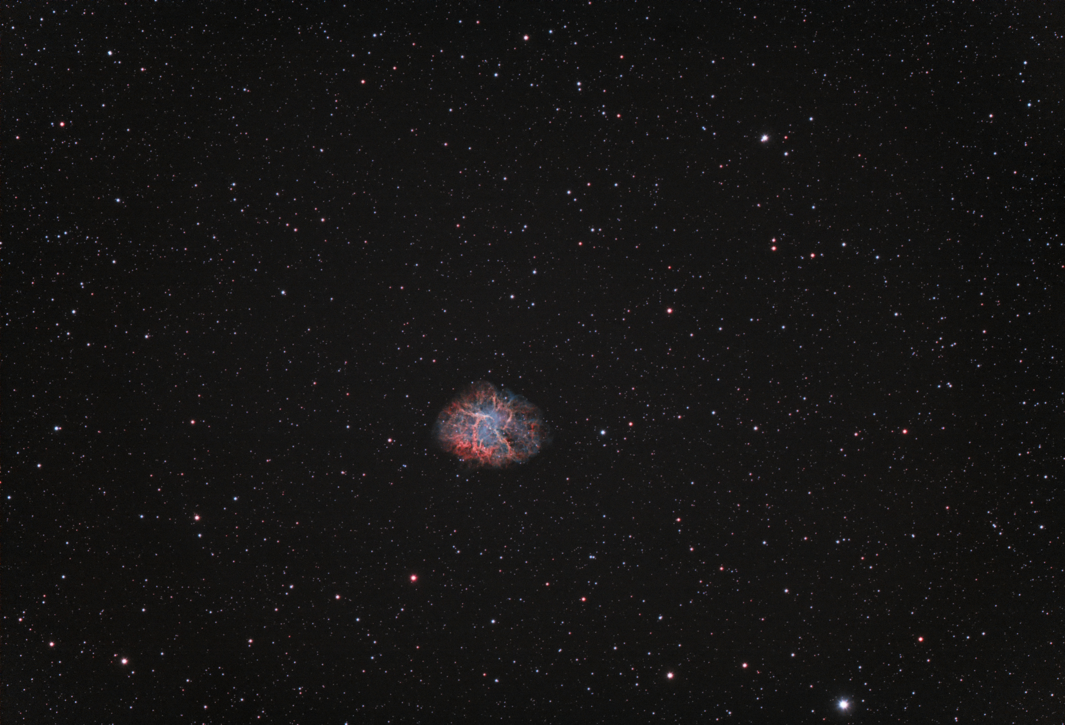 Laut chinesischen Aufzeichnungen explodierte im Jahr 1054 ein Riesenstern. Die Supernova war so hell, daß sie sogar während des Tages sichtbar war. Die Überreste dieser Sternexplosion nennen wir M1 oder den Krebsnebel. Es ist eine Explosionswolke im All die noch heute mit etwa 1500 Kilometer pro Sekunde explodiert. Man sieht dem Objekt die Wucht der Explosion auch heute noch an. Der Rest der Supernova ist ein Pulsar in der Mitte des Objektes (2. Aufnahme) Der Krebsnebel ist im Sternbild Stier zu finden und bereits durch gute Ferngläser zu sehen.