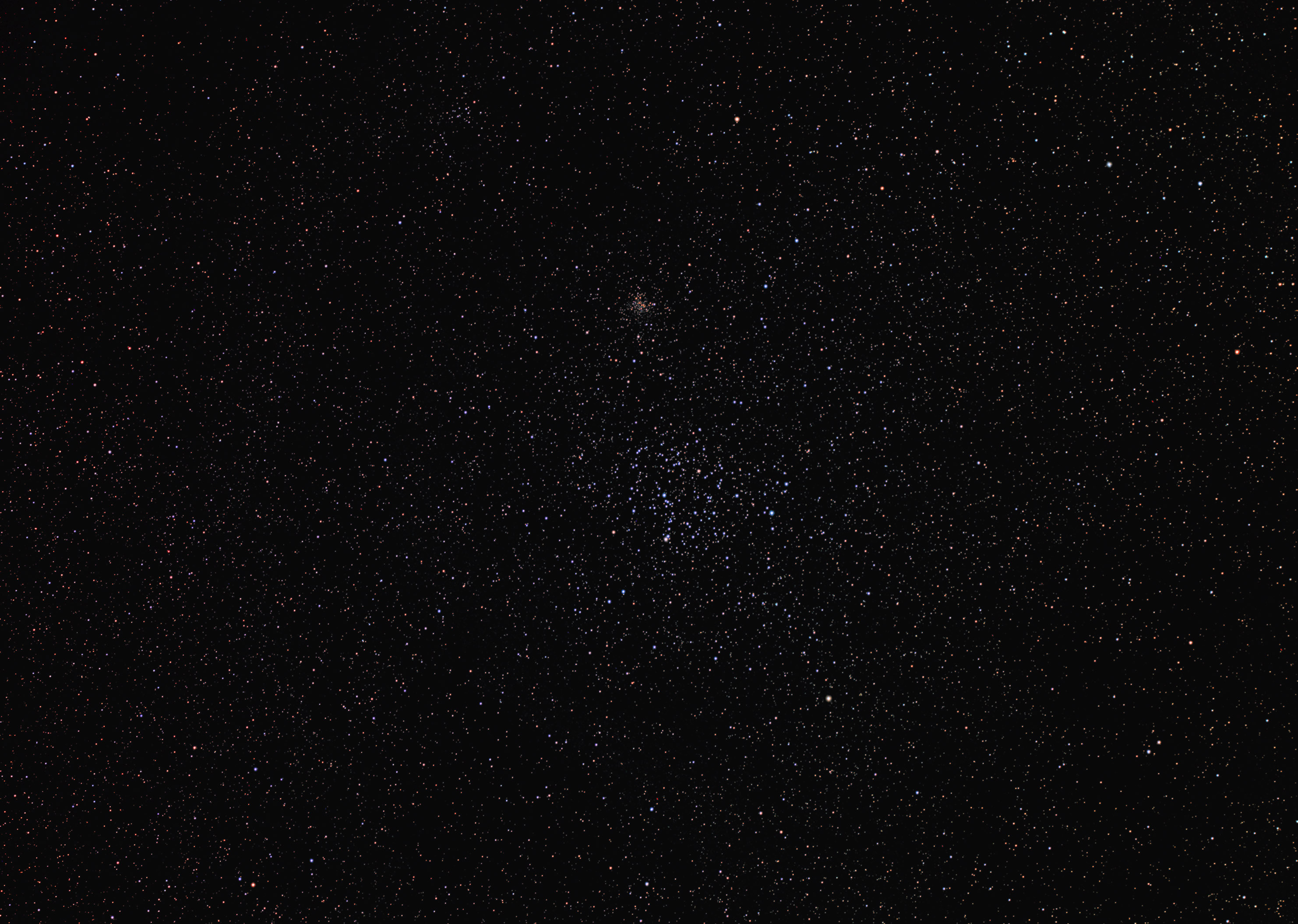Messier 35 ist ein offener Sternhaufen im Sternbild Zwillinge. Es ist einer der helleren Sternhaufen und unter perfekten Bedingungen schon mit dem bloßen Auge sichtbar. Daneben ist der fernere und deutlich ältere offene Sternhaufen NGC 2158 zu sehen. Sehr markant ist der Unterschied der Sternfarben. Der kleinere Sternhaufen ist über 1 Milliarde Jahre alt und sehr konzentriert. .