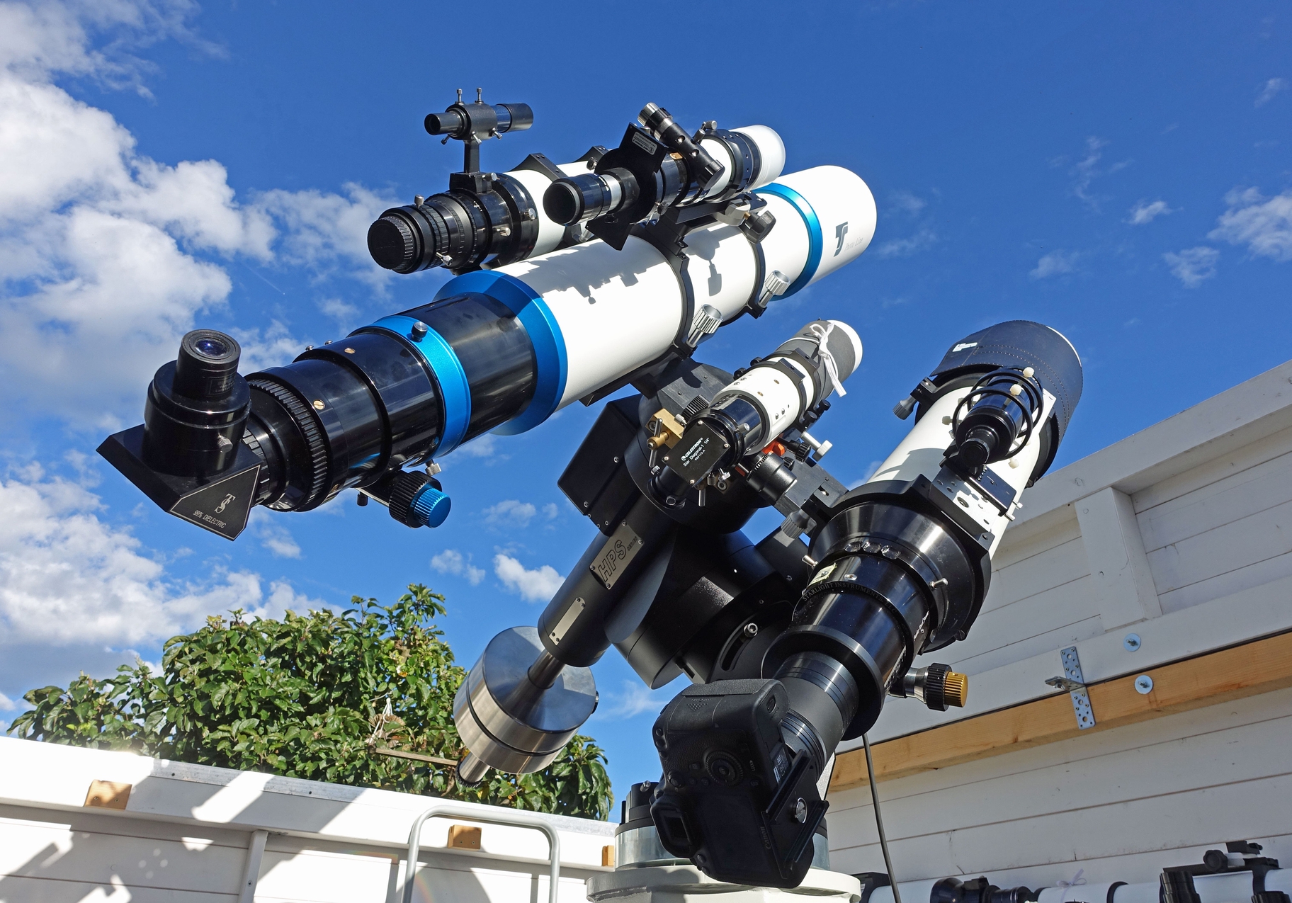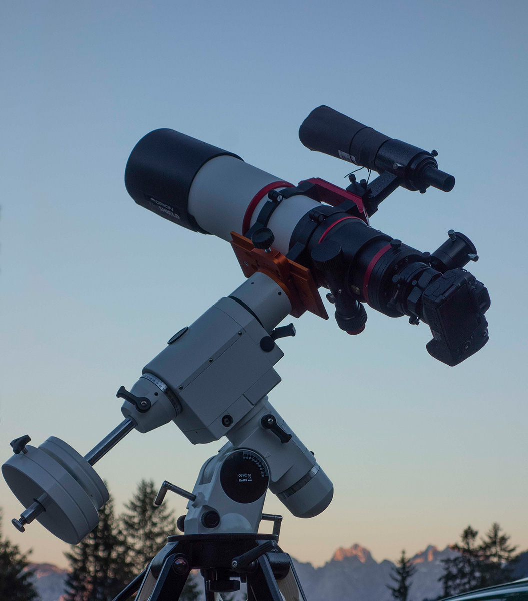 Zur Zeit habe ich in der Sternwarte verschiedene APO Refraktoren und einen 10" ONTC Astrographen im Einsatz, natürlich alle von Teleskop-Service. Basis ist die GM3000 HPS von 10Micron, eine wirklich ultimative Montierung. Mittlerweile bin ich auch gerne wieder mobil unterwegs, hauptsächlich in Kirchberg/Tirol. Hier ist die Basis eine solide H-EQ5 und der Star Adventurer von Skywatcher. Als Kameras dienen verschiedene gekühlte Kameras von ZWO und eine umgebaute EOS RP.